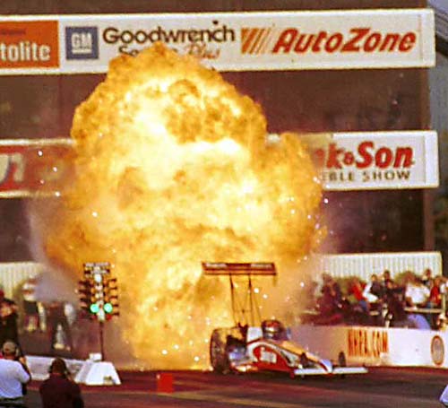NHRA Division 7 photographer Bob Johnson caught this shot of Doug Herbert's massive explosion and was kind enough to share it with us.