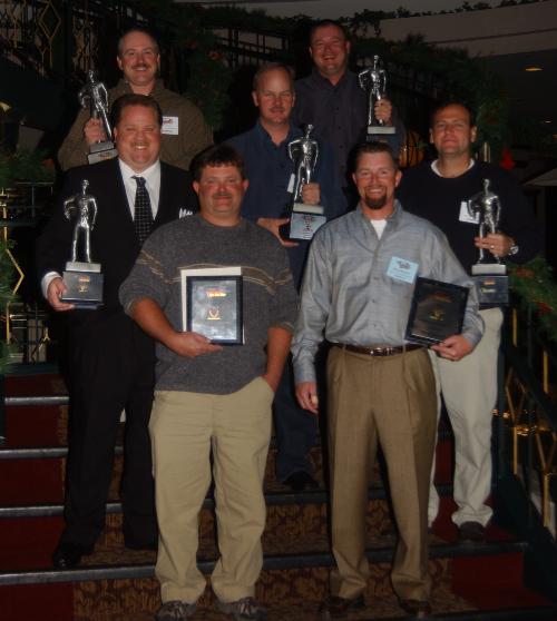(Back row, left to right) Curtis Harvey - Division 4 champion; Ed Pauley - Division 9 champion;