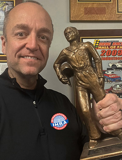 HOUSE SPRINGS, Mo. - It's much more than just a logo. It's a symbol of the commitment to bring the IHRA back to its former glory. The International Hot Rod Association (IHRA) announced today a return to the famed globed logo and the original Ironman trophy. In addition, the hashtag #IHRAReturntoGlory will be used for IHRA posts on social media and other content. "Everywhere I go, the people I see have a love for the original IHRA and what it was all about," IHRA President Kenny Nowling said. "We listened to our track partners, racers and fans. The desire to go back to the original logo is overwhelming." It is a tribute to the IHRA's history with the sanctioning body founded by Larry Carrier in 1970 and the first national events held in 1971. His son, Andy Carrier, was overjoyed when he heard the news the IHRA was bringing back the iconic logo. "That's wonderful. I've been watching a lot of the old IHRA races on YouTube and the nostalgia makes you proud," Carrier said. "I remember walking into the IHRA offices as a kid and that logo always stood out. It was so pretty with the red, white and blue. When Bill Bader Sr. was still alive, they did a tribute to dad and they gave us plaques with the old logo on it. That was very special to the family."