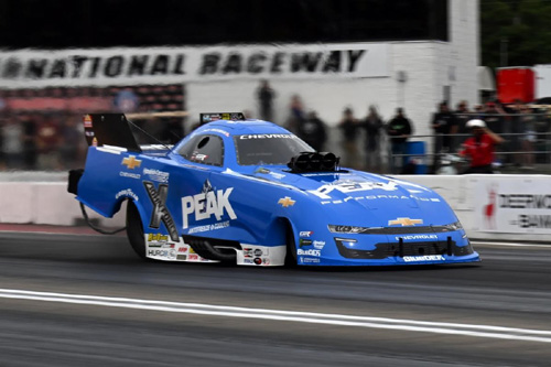 The 37-time Funny Car winner dispatched Dave Richards and Dan Wilkerson in the first two rounds before coming up on the short end against Todd. Beckman’s run of 3.889 seconds at 323.81 mph wasn’t enough to get around Todd’s run of 3.863 at 334.32 mph. Despite the early exit, Beckman moved back into second place in the point standings, now 27 ahead of Hagan and 58 ahead of Ron Capps. “It was a good weekend, but it wasn't a great weekend. The excellent part about it was qualifying No. 1 and winning the Mission Foods 2Fast2Tasty Challenge. Then, in the semis, we just got outrun by the car that, the round before, set low ET of the weekend to this point and they did what they needed to do. I think we put a hole out and it knocked the blower belt off right in the lights … but a good day. “Our PEAK Antifreeze and Coolant Chevy is just fine. We did well in the points this weekend and we're rolling into Indy (for the Aug. 27-Sept. 1 Cornwell Quality Parts U.S. Nationals) where we’ll earn points and a half. We're not going to catch Austin for the regular season points deal so we just want to win in Indy. That'll solidify second in the points before we reset the points and then here we go again.”