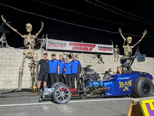 The team has been busy prepping the Funny Car for Las Vegas which included some roll cage padding upgrades to conform to the new rules that became effective in July. Dylan crewed on Maddern's Top Alcohol Dragster in Seattle during the August event and then again in Dallas during the Stampede of Speed and Texas Fall Nationals. Last weekend he was working with veteran Johnny West and his Plan A fuel altered at the California Hot Rod Reunion and worked his way to a win at the historic event.