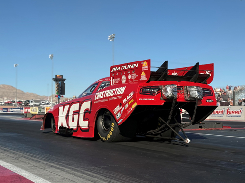 LAS VEGAS --- Fan-favorite Funny Car driver Buddy Hull made his much-anticipated return to NHRA competition this weekend at the Dodge NHRA Nevada Nationals powered by Direct Connection, held at The Strip at Las Vegas Motor Speedway. It was Hull's first event back behind the wheel since suffering a hand injury during the Sonoma Nationals in July, and his return was well-welcomed by the Jim Dunn Racing team, fans and the NHRA community. Piloting the KGC Construction Funny Car, Hull showed steady progress throughout the weekend. His best performance came in the fourth and final qualifying session on Saturday, when he powered to a 4.163 second pass at 257.63 mph. In one of the most competitive Funny Car fields of the season, with 21 cars vying for 16 spots, Hull ultimately qualified in the No. 19 position, narrowly missing the field for Sunday's eliminations. Despite not making the race day lineup, Hull's return to the driver's seat was a personal and professional milestone.