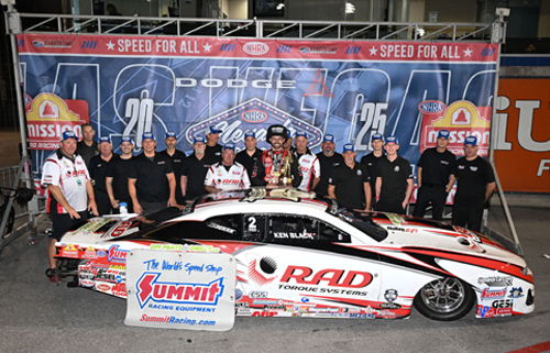 LAS VEGAS - The battle for the 2025 Mission Foods Drag Racing Series Pro Stock championship has been whittled down to just two, and with a victory in Las Vegas, Dallas Glenn and his KB Titan Racing-powered RAD Torque Systems Chevrolet Camaro extended the points lead and created quite a hill to climb for his closest competitor when the tour pulls into Pomona, Calif., for the In-N-Out Burger NHRA Finals. The championship has come down to Glenn and his boss, Greg Anderson, driver of the HendrickCars.com Chevrolet and the most winning driver in the history of the class. Glenn now leads Anderson, the reigning and six-time world champion, by 92 points heading into the last race of the season. A potentially pivotal moment in the season's championship chase - and most likely one of the most important rounds of Glenn's career - came in the semifinals there at the Dodge NHRA Nevada Natioanls, where he and Anderson found one another, each intent on defeating the friendly rival in the other lane. Glenn launched first with a .026 light, but Anderson was only behind by seven-thousandths in his start. It was an incredible war down the dragstrip, with Glenn keeping just ahead even as Anderson worked hard to make up ground. At the final stripe, it was Glenn with the win light on a 6.606, 206.92 that defeated a quicker 6.603, 205.91. The margin of victory in Glenn's favor was just four thousandths of a second, allowing him to advance to the 40th final round of his Pro Stock career and 13th of the season in just 17 races. "Even though winning that round over Greg felt like a win to me, now I had a chance to really put the damage on. It was like, 'You can go put the icing on the cake,' and who wants a cake without icing," said Glenn, who went on to earn his eighth win of the season and 21st Pro Stock trophy of his career by defeating KBT-powered Matt Hartford in the final, putting up a characteristically quick .006-second reaction time and a 6.602 pass at 206.61 mph to keep ahead of Hartford's strong .012 start and 6.625, 207.50. En route to the final, Glenn defeated 26-time Pro Stock winner Dave Connolly, part of the KB Titan braintrust of crew chiefs, before notching victory over six-time champion Erica Enders in the quarterfinals. Glenn and Anderson have been in combat for more than a year, stretching back to the 2024 championship that was won by Anderson in the final round of the final race of the season. The two went head-to-head in last year's Pomona finale with Anderson winning their match by .002-second and, thusly, the championship by 11 points. This time around, Glenn is entering Pomona more than three rounds ahead of his competitor. In essence, Glenn would have to falter early, and Anderson would have to all but win in order to score a seventh series title. It could still go in either direction, and no matter what happens, KB Titan Racing is assured a 10th Pro Stock championship. For Glenn, to be in this position with one of the most successful teams in NHRA history borders on unbelievable. "At the beginning of this season, we were just having so much fun trying to crush everybody, and both our cars were just working fantastic," said Glenn. "But now, to get by Greg in an absolutely crazy race today and make it to another final - there are just so many people who haven't even been able to win that many rounds, let alone to have all of those final rounds in one season. It reminds you of the glory days of KB Racing, when they won like 19 races in one season. I feel like we're having one of those seasons, and you just don't want to be the one to mess it up. I can't describe how good this feels, holding the trophy here. It hasn't really hit me yet, but I still need to do good in Pomona." The final stop on the 2025 Mission Foods Drag Racing Series tour will be the In-N-Out Burger NHRA Finals in Pomona, Nov. 13-16. KB Titan Racing Race Results