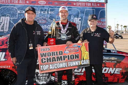 LAS VEGAS – Bartone Bros. Racing captured its fifth NHRA Lucas Oil Drag Racing Series Top Alcohol Funny Car World Championship on Saturday at The Strip at Las Vegas Motor Speedway.