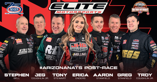JEG COUGHLIN JR., JEGS "It was a good semifinal finish here in Arizona after an early exit in Gainesville a couple weeks ago. It felt good to see some win lights turn on in round one and two. Obviously was looking forward to it in the semis, just didn't have anything for it. The team's been working on our setups for these hotter conditions, and we've been much, much, much better. Evidence: I've had my best qualifying effort in the last year, really. Qualifying number 5 going into the event, that felt really good. We were high-fiving as a team. I'm really proud of these guys and gals at Elite Motorsports. It's been a hell of an effort. When you're chasing performance and chasing on track results, sometimes it can get a little troublesome. Our Elite group has kept their heads down, kept it clean, and I think we're real close to showing some great brilliance for the rest of the year."