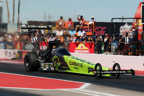 A weekend of record high temperatures presented challenges for teams competing at the NHRA Arizona Nationals, but Rookie of the Year contender Maddi Gordon and her Carlyle Tools Top Fuel team adapted well and reached the semifinals for the second consecutive race Sunday afternoon at Firebird Motorsports Park. The Ron Capps Motorsports driver had the quickest car on the property on Friday and ultimately qualified a career-best fourth, setting up a promising race day in the heat. Gordon is now fifth in the Top Fuel points standings after the second of 20 races. With crew chiefs Rob Flynn and Troy Fasching calling the shots, Gordon was the star of the first qualifying session on Friday morning as she fired off the only sub-4-second pass of the session, a 3.844-second E.T. at 329.42 mph. Though she didn't improve in the second session, she maintained the top spot to end the day as the provisional No. 1 qualifier for the first time as a professional driver. Saturday brought Gordon's first career Mission #2Fast2Tasty Challenge, a race-within-a-race featuring the semifinalists from the previous event. It was a side-by-side race from stripe to stripe, but Gordon's 3.806 E.T. came up just a tick short to two-time and reigning world champion Doug Kalitta and his 3.804 E.T. In the challenging final qualifying session, Gordon's machine lost traction around half-track and coasted to the finish line, ultimately settling into the No. 4 starting position. On Sunday morning, Gordon lined up against newcomer Jaren Mott. Gordon grabbed the starting line advantage and never looked back, powering to a 3.852-second pass at 324.98 mph to move on. Gordon then met up with 2025 regular season champion Tony Stewart in the quarterfinals. Though Stewart moved first, Gordon drove around him with an ultra-consistent 3.851 E.T. at 324.83 mph. In the semifinals, matched up with past world champion Shawn Langdon, Gordon started to lose traction down-track and coasted across the finish line behind Langdon. She did, however, earn a spot in the next Mission #2Fast2Tasty Challenge with her semifinal appearance. "Rob and Troy have proven they know how to walk it down the hot racetracks," Gordon said. "It's not about applying all the power. It's walking it through there, which can be harder than trying to slam down those fast runs at times. I'm just really, really happy. I was in the car just looking around, thinking, 'There is nobody else I'd rather drive for than Ron (Capps), Rob and Troy, Chuck (Grospitch), everybody on our team, Carlyle Tools, and Monster Energy. "My reaction times are getting a little bit more consistent in the .080s, and my dad and I worked on that on the practice tree this weekend," continued Gordon, referencing her father, three-time NHRA Top Alcohol Funny Car world champion Doug Gordon. "As much time as the crew chiefs spend in the lounge making the race car go fast, I try to spend the same amount of time making me the best driver I can be. My reaction time on the starting line and my reaction time catching it when it smokes the tires or something like that is what's going to make me a valuable driver, so that's what I'm trying to work on." Gordon's rookie season behind the wheel of the Carlyle Tools Top Fuel dragster will continue in three weeks at one of her home races on the NHRA Mission Foods Drag Racing Series tour, the NHRA Winternationals, April 10-12, at In-N-Out Burger Pomona Dragstrip in Pomona, California. Qualified: No. 4 (3.806 E.T. at 327.82 MPH)