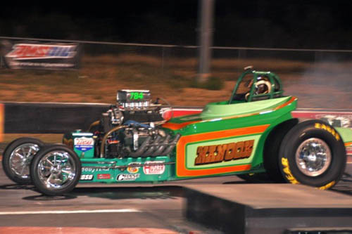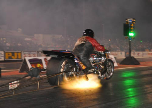 Mike Scott led the Nitro Harley category with a memorable 6.353, 221.49, barely enough to hold off a hard-charging Jay Turner. Turner posted a 6.399, 230.88 during his second round of qualifying and was one of two drivers to break the 230 mph mark in the two-wheel class. Randal Andras was third with a 6.416, 224.10, followed by Steve Dorn (6.648, 212.23) and Ron Gledhill (7.171, 198.79). Alvin Kobernusz, Mike Pelrine and Steve Heidner rounded out the bike field. In Nitro Altered third-generation driver Kyle Hough topped the wild class with a 6.796, 187.11 run after being forced to shut the car off in round one. He was followed by Jim Maroney who had a distant 7.445, 143.61. Rounding out the field is Ron Maroney, Ron Hope, Steve Nelson and Mike Hilsabeck.