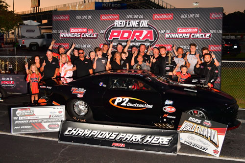 FREDERICKSBURG, Va. - Ethan Steding had his work cut out for him as he rolled into the 2025 Red Line Oil PDRA Drag Racing Series season looking to defend his 2024 Liberty's Gears Pro Street presented by Menscer Motorsports world championship. Competing against an increasingly competitive field that included 2023 Super Street world champion Blake Denton and Super Bowl champion turned Pro Street rookie Fletcher Cox, Steding raced to a nearly perfect second half of the season - three wins in four final rounds - to claim his second straight championship. Steding's sophomore season behind the wheel of his roots-blown P2 Contracting "College Fund" '24 Camaro began with a first-round exit at the season-opening East Coast Nationals at GALOT Motorsports Park. He rebounded with a final-round win over season opener winner Blake Denton at the Mid-Atlantic Showdown at Virginia Motorsports Park. Steding bowed out in the semifinals at the North vs. South Shootout at Maryland International Raceway, while Denton picked up his second win in three final rounds to extend his points lead.