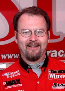 Tim’s experience at Pomona was like that of most of the other competitors, that is, he said it was a dream come true. "When I first heard that Summit was putting on this event, I said, ‘I’m going to be a part of that someday.’ It was everything I expected and more." Still, after winning the title, Tim said that he was emotionally drained. "The photographer at the end of the track wanted me to pump my arms in the air and look excited after the final round, but I was simply too exhausted. But that doesn’t mean that I wasn’t happy." When I asked Tim if he met or talked with any of his fellow competitors at Pomona he had what I found to be a very interesting response. "I don’t talk to my competitors," he told me. "I don’t want to know them or like them." And, while that may seem harsh, Tim said that he feels that this approach gives him a mental edge over the other racers. "I want to concentrate on what I’m doing. As George taught me at the school, you’ve got to stay focused and see your runs through from start to finish. You’ve got to practice them and I can’t do that if I’m talking to the other guys." After his performance in California, I’ll bet Mr. Bryce is pretty proud of his student. Tim said that the key to winning a race like this, or any race, is to not make any mistakes. And, when his final round opponent, Ed Ehrke, fouled out, Tim was the champion. "We rolled a little extra into the box, were very careful of our dial-in in the finals and gave it our best shot. After spinning the tires badly in the first round, I really didn’t know what to expect." Well, with a history, a track record and a mental attitude like he has, I’m sure Tim expected the best, and he got it. "This is something I’ll never forget."