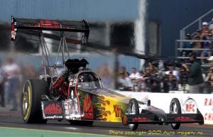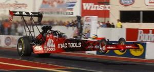 "Then we went down to Phoenix and we tested in this (fuel) car in '98. Ed McCulloch and Eddie Hill signed me off." Flying-wise, Doug goes back a ways. "I started working with Connie's airline company in '82 and worked on the car crew for about a year, I got hooked up with the airplanes. I got my single engine, or actually my multi-engine license in '94. "It was unusual. Just before my single engine license flight one of the guys put the plane in a water reservoir. The plane was trashed," but imperturbable Doug followed a silver lining. "I had enough time flying the twin engine, so I went ahead and got my license in that, which was kinda cool," he says. That has grown to today's involvement. "We just went ahead with the purchase of an airline company which has the smaller Lear jets. We provide a charter service with that company -- not myself too often. I do some of the maintenance and if we run out of pilots, which happens on occasion, I jump in." Kalitta says that in the course of a year he probably makes sixty such flights. "Connie, naturally, with his background in the sport, is a great help and Scott was a really big help, especially initially, you know, getting up to speed." So now we move forward to 2001 and the climb to third. It was an a happy year in more than one way because just five days before celebrating his first win of the season at Phoenix, wife Josie gave birth to son Mitchell (2/13/01). Mitchell was on hand later at the Thunder Valley Nationals where he watched dad become the first multiple winner of the season. What single thing helped you move into third last year? "The main thing in drag racing is, of course, going rounds and that was probably the biggest single factor. You can't do that, however, without consistency and with Connie and Jim Oberhofer. That would be the one word, consistency." Mac Tools was an associate sponsor on the car since 1998, but came became the primary sponsor last year. "Probably one of the nicest things about the Mac Tools relationship is the Mac Tools distributors have a tool fair, one of which we went to last weekend, which has nearly 3,000 people. They're a motivated high-energy group and they actually come to quite a few of the races." Last year the team went to a distributorship function in connection with Mac Tools at U.S. Nationals and Columbus. There are probably about three such trips a year. Any extra pressure coming back here to the Mac Tools Gatornationals or other races backed by the sponsor? "No there's really not. We carry enough of our own pressure. That doesn't put any undue pressure on us. We'd certainly like to win as many of their races. Two years ago we won this race and last year we were fortunate enough to win the race at Bristol, which Mac Tools also sponsors. We want do good, do as well as we can for our sponsor." Kalitta says in order to move from third and contend for the championship, he says it would probably be good to have a car that could consistent 4.50s all day. "If you could run consistent 4:50s or low 60s on Sunday, that would probably be a good start. You can't leave out the driver, too. You've got to have a good reaction time throughout the year. So between the two, you need them both." What about the new tire rule? "You’d better address that to Connie or Jim." OK, we'll do that. What's the best piece of advice you've received from a racing veteran? "I worked with Ed McCulloch, the crew chief when I first started. The one thing he always used to stress most was you have to make sure you keep your car in the center of the track, in the groove, because obviously if you get out of the groove in drag racing, you're out to where there's not as much rubber on the track." Finally, Kalitta says the one thing that will probably make this season interesting is that purchase of the company he made over the winter. "It'll be a little challenging. The company is 16 people and we run a charter service with 12 Lears and we have a Hawker, which is a little larger. We run cargo and air ambulance and passengers. Kalitta Charters is the company. Yeah, he's president, CEO the whole works. "Our primary base is Detroit, Mich. and we have another base in Moorestown, Tenn. and we keep an airplane based in El Paso, Texas. So those are the areas we mostly cover, but over the last couple of years I was vice president of this company, so I've worked with this team the last couple of years and am able to delegate around and still be successful." Now to crew chief Jim Oberhofer and Connie Kalitta. First, Oberhofer: "I've worked for the Kalittas now, this is starting my 15th year and I have actually been crew chief -- well, I call it co-crew chief with Connie-- since the beginning of the 2000 season. "What are Doug's strong points as a driver? "I think he's one of the most laid-back drivers there are and sometimes that's good and sometimes not. I don't think it hurts our team, because he doesn't get rattled very easily. He pretty much has the same focus no matter what. He's a Lear Jet pilot and has flown big planes and the first full run he ever made, the guy ever made, he went 4.66 at 315 and he got out of the car like it was no big deal to him. "I think he's probably the coolest and the most calm driver there is and I think he reacts very well to certain situations. He's a very, very talented driver. We would like to see him in the IROC (International Race of Champions) series if we could win the championship in drag racing. "In my opinion, he's probably the most talented Top Fuel driver, maybe nitro driver there is in drag racing. I think his sprint car driving, where in every lap there was something different, certainly helped him." That apparently pesky new rear tire, the 1430 slick? "From what I understand Goodyear puts a speed rating on a tire and last year's was 350 MPH. When the national speed record gets to within a certain percentage of that, then they want to make the next move. This new tire has a speed rating of 375,