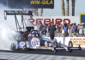 Moving on…this will be a big weekend for the Dodge Funny Car contingent, headed by Whit Bazemore and the MATCO Tools car. Along with Lee Beard and the rest of “Team Schumacher,” this team expects to come into town and leave with the trophy, although if they do, it’ll be a first for Whit. Did you know that in all of his years at Gainesville, not only has Whit never won the race, he’s never even made it to the final round? In fact, he’s only gotten out of the second round once!! But they love the Dodge body, and they’ll have lots of Mopar folks on hand to cheer them to victory. At least, that’s how they tell the story….Whit’s teammate, Gary Scelzi, will run a special one-race Dodge body for the event and don’t think the folks at Mopar wouldn’t love to see that Ram in the winner’s circle. Gary has had better success than Whit in Florida, but just barely, making it to the money round in 2001 where he lost to, you guessed it, Larry Dixon. If my notes are correct, Whit and/or Gary will be running the new Norm Drazy built supercharger in Florida and that could be just what they need to go all the way. Tony Schumacher has already been using it on his dragster and they’ve rung up some pretty impressive numbers with it…..Tony Pedregon, even with his second round loss in Phoenix, still has the hottest Funny Car around these days. Did you know that Tony’s last 27 runs have all been 4.97 seconds or quicker? All 27 of ‘em!! Over that span he has put up four runs in the 4.70 range, 14 in the 4.80 zone and 9 in the 4.90 area, and that’s why everyone else fears him right now. Still, other than last year’s win, he hasn’t fared much better at Gainesville than Whit has, in fact, other than last year Tony has never gotten past the second round in Florida, so this should be a big test for him and his Castrol Syntec team….On the other hand, Mr. John Force just about owns this place. If he qualifies for the show, John will tie the record of 303 consecutive races at which he has qualified, the record that is currently held by Warren Johnson. Ironically, Warren’s record began after he failed to qualify in Gainesville in 1987. When you consider the fact that John has been in the top half of the field at the Gatornationals at every race for the past 18 years, well, you’ve got to like his chances of making the show this weekend, don’t you?