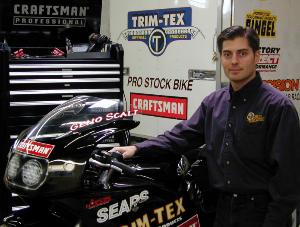 PALATINE, Ill. -- With the season set to begin for NHRA’s Pro Stock Bike class, Geno Scali’s Team Trim-Tex has additional leverage in their championship quest. Craftsman joins Team Trim-Tex as an associate sponsor for the 2003 racing season. Scali and partner Joe Koenig, president of Trim-Tex Drywall Products, who formed Team Trim-Tex last November, are glad to officially announce the sponsorship. “I am thrilled about Craftsman’s involvement with this team,” Scali said. “Craftsman has supported me professionally for the past three seasons, so I’m glad that they’re coming aboard with Team Trim-Tex.”