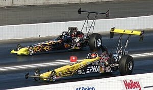 by Ashley Force. Her victory, combined with a John Force win in Funny Car, notched