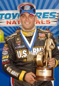 With his accomplishments in '05, Schumacher is being considered for a handful of post-season awards. Having been named a first team All-America by the American Auto Racing Writers & Broadcasters Association, he's also up for that organization's prestigious Jerry Titus Award. In addition, he's also a nominee for Speed Channel's Fourth Quarter Driver of the Year as well as the Eastern Motorsports Press Association's Al Holbert Memorial Driver of the Year Award. "If I should be lucky enough to win one of those awards, I'll present it to the team because they deserve the recognition," said Schumacher. "Without them, I'm not in the position that I'm in today." So, with 2006 on the horizon, can Schumacher become only the second Top Fuel driver in NHRA history to win three consecutive world titles? "I will guarantee you, the U.S. Army team will be gunning for that," he added. "We'll be going 150 percent by the time we get to Pomona, Calif. in February."