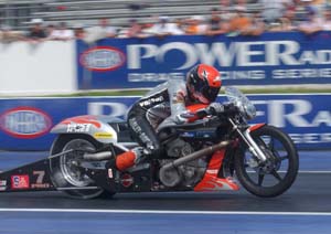 "When we get to Gainesville there might be several of us in the sixes," said Hines, who owns the current NHRA national record for elapsed time at 7.016 seconds. "I believe we have two six-second bikes right here in our shop. I'd like to be the first one to do it, but if I'm not, I can live with it." During offseason testing three-time champ Angelle Sampey recorded the second unofficial run in the six-second zone on a Pro Stock Motorcycle. Her teammate, Antron Brown, clocked the first one at 6.995 seconds, while Sampey followed on her identically-prepared U.S. Army Suzuki with a 6.989 second run. "It was awesome to run in the sixes, even though it didn't count for anything," Sampey said. "The weather was really great so we knew we'd run fast, and when Antron and I both ran 7.0 (seconds) on shutoff runs, we knew we could do it." Sampey, who narrowly missed earning a fourth NHRA POWERade world championship title last year by 38 points, says the milestone would be nice, but she wants the big prize at the end of the season. "This year my focus is on winning another championship," Sampey said. "There's a lot of pressure that goes with racing for a championship. Thankfully, I've learned how to deal with it." With all of the excitement being generated around breaking the seven-second barrier, along with the addition of a couple of new riders and an expected break-out season for several others, this Pro Stock Motorcycle campaign could be one of the best ever according to veteran rider Steve Johnson. "Every year I say this is going to be the most exciting and competitive season for the Pro Stock Motorcycle class, but I think 2005 really will be," Johnson said.