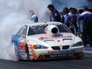 "It's good to be on top, you bet, especially for our new sponsor Zantrex-3; and for Mac Tools, because they're the principle sponsor of this race," Grubnic said. "We're running well and we absolutely feel as though we're very close (to our first win). The team and car is there. It's really just a matter of time. No worries." Anderson took his 34th No. 1 qualifying award and first of the season with a national record run of 6.633 at 208.23 in his Summit Racing Pontiac Grand Am.