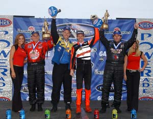 It was Kalitta's second victory at Gainesville and it put him back on the championship track after opening the season with back-to-back first round losses. "To win this race is phenomenal," said Kalitta, who defeated Doug Herbert, Andrew Cowin and Cory McClenathan to advance to the final-round. "There's so much history with this race. I came here just wondering what it would take to get back in the mix (of the championship chase) and I guess this will go a long way towards helping us out. We moved up to fifth today so that's a start."