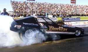 250mph front engined top fuel dragsters and funny cars, 200mph blown gassers and A/Fuel dragsters,