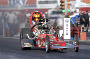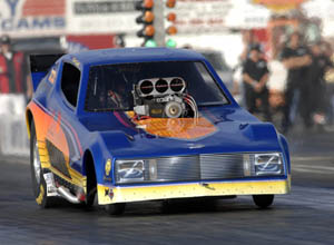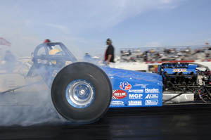 here this weekend behind the wheel of he and his father's recreated "Blue Max" Ford funny car lost