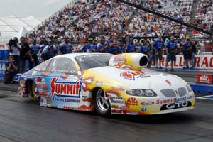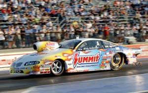 "The only ones who have run it so far are Warren and Kurt (Johnson). We hope to debut ours at the opening race in Pomona. "The bottom line is we're trying to do the best of both worlds. I'll go do the car testing and he'll stay there and do the dyno and we'll keep both programs running." Anderson says the team has brain-stormed for the last two months since they left the final event at Pomona. "We think we've got a lot of ideas a lot of neat things we want to test before we go racing again," he says. "The problem is, it's snowing in Charlotte and we really can't test there. We've got an eighth-mile track two blocks from the shop where we do all our testing in the summertime. Because of Mother Nature, we had to go south and even if we went to Valdosta it would probably be another 10 degrees colder," he concludes And Anderson points out that as a two-car team, he and Line can share information, not only from testing, but once the season is underway. "What we learn with one car, we apply to the other and the same with the engines. That's one of the benefits of having a two-car team. When we go to a National Event we have twice the amount of runs a one-car team has and twice the amount of data and when we go test somewhere we don't have to shut down the shop." Anderson and Line also have another major change in their Ken Black/Summit team. "Jeff Perley (former co-crew chief along with Rob Downing) is not with us any more," Anderson points out. "He retired at the end of last season and started his own Goodyear tire store and is back in Charlotte where he also hopes to spend more time with his family, "We had a great run with him, but it's a new chapter for us. We have a new guy by the name of Derek Jones, as our lead engineer and Rob will be the lone crew chief right now. That's another reason we're down here. (at Gainesville). Derek is new to drag racing -- he comes from the round track world -- and he and one other guy are new on my team." Gainesville was the site where Anderson started his five-straight victory string back in '04 and was later named Driver of the Year. "Yeah, Gainesville has always been a favorite of mine," he says. "First of all, I can remember when I was a little kid, coming down here with my parents and I thought this was the biggest race in the world and the neatest thing. You know we had family down here and we'd always come to the Gatornationals, just as fans. "Then when I started racing it, well it's what Pro Stock racers like. We like smooth race tracks and this is good and smooth track and obviously has real good air. You've got a good barometer here because you're close to sea-level and it's a fast race track." And thanks Greg, for those smooth answers. And since you DIDN'T sneak away, also take our congratulations back to Jason at the shop.