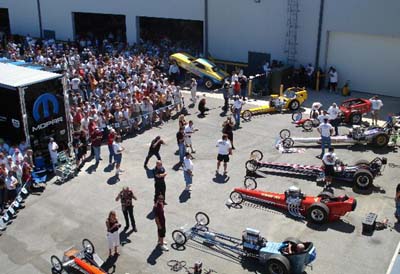 In six hours, nearly 5,000 fans, drivers, VIPs and NHRA drag-racing participants passed through the second annual Don Schumacher Racing Open House. DSR offered race fans an opportunity to meet its drivers (Tony Schumacher, Gary Scelzi, Ron Capps, Jack Beckman, Richie Stevens, Angelle Sampey, and Antron Brown) and other stars of the NHRA POWERade Drag Racing Series. They also viewed and smelled 1960s and '70s vintage nitro cars and enjoyed classic cars and motorcycles on display by the Indy Hi-Winders Car Club. Proceeds from the Car and Bike Show, a raffle of an assortment of autographed and custom products from DSR partners, as well as voluntary donations and food and beverage revenue, directly benefited Riley Hospital for Children. DSR drivers also visited the young patients at Riley Hospital late Thursday afternoon. "In addition to the $17,000 that will go 100 percent to the benefit of Riley, it's important to realize that it will help families that may not have the resources to get the wonderful care the hospital provides," said Greg Williamson, Vice President of Development for Riley Children's Foundation. "It is a great event in that it raises awareness in the several thousand people who came through DSR. Over and over they heard the Tyler Genneken story: that just one year ago this young man was diagnosed with Leukemia while on a family vacation and has been fighting for his life ever since." "To have the Genneken family with us for the day and see Tyler aboard a nostalgia Top Fuel car during the Cacklefest made my day," said Mike Lewis, Senior Vice President of DSR. "The guys from the NHRA Museum made that possible, and I think they burned every last drop of nitro fuel to give him a moment he will remember forever. "Exceeding last year's financial contribution is exciting. None of that is possible without the effort of DSR employees and their families. We have so many volunteers for this event and it is truly a labor of love for us," Lewis concluded.