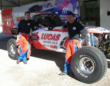 Speeding out of Ensenada the pair quickly came up against the treacherous terrain for which this legendary race is known. Having to tackle some of the worst territory one could envision in an unfamiliar vehicle, a game yet inexperienced Lucas and Todd literally faced an uphill climb, and despite their best efforts it didn't take long before a mishap would prematurely sideline the young drivers. "All five of my tear-offs were gone before we got out of town with all the mud that was in the washes," grinned Lucas. "We finally hit the open road, where we encountered everything from having to dodge fire pits and other booby traps people had set up, to having rocks thrown at us. It was an unforgettable experience, driving across terrain you couldn't imagine. Going into our first pit stop at the checkpoint, we had a real good sense of pride.