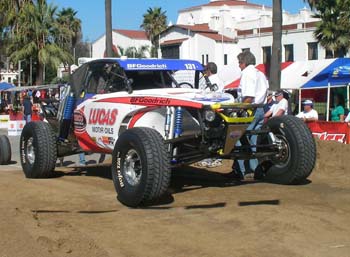 While completing a distance of 175-miles may not seem like much when compared to the 1, 296-miles needed to finish the race, the time Lucas and Todd spent behind the wheel was a harrowing experience unlike anything this drag racing duo had even seen. The field was comprised of 424 total entries from a SCORE-record, 44 states and 20 different countries, of which only 239 participants completed the Baja 1000 course. There were 28 Professional and six Sportsman classes for cars, trucks, motorcycles and ATVs marking the second largest field in the history of the desert classic. "It was cool to say the least," said Lucas. "You start the race going up a dirt mound where you shake the hand of Sal Fish, president of SCORE. After that, you drive off a little and that's when they give you the green light to go. J.R. and I were waiting our turn and watching the pair in front of us when we started to get excited. Those guys rev it up, drop the clutch and start blazing the tires taking off.