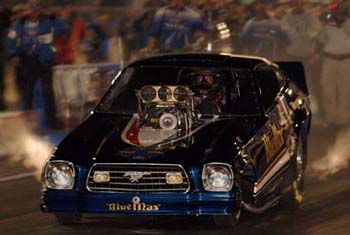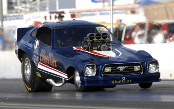 Worsham has entered his Blue Max in the "Funny Car Fever II" event, set for this Saturday (May 10) at Southwestern International Raceway in Tucson, Ariz., where he will compete with other dedicated nostalgia competitors in search of low E.T.'s, bragging rights, trophies, and purse money. Though strictly a Worsham side-project, the carefully restored version of Raymond Beadle's 1977 Mustang II Blue Max has impressed crowds and racers alike, while either making exhibition runs at NHRA National Events or competing at a select few sanctioned nostalgia events and match races. Worsham's first full lap in the car, an exhibition pass at the '05 NHRA Dallas race with Beadle in attendance, resulted in a 5.97-second time slip, making his Blue Max the first Nostalgia Funny Car to dip into the 5-second range. "We just love racing the car, and when I heard about this event in Tucson I knew we wanted to go have some fun, if the weather didn't mess up our NHRA schedule," Worsham said. "We've had some iffy weather at the last two NHRA races, in Atlanta and St. Louis, so I was keeping my fingers crossed and I couldn't commit to this deal until I knew for sure we could go. I don't know if the fingers being crossed helped or not, but we dodged the rain drops enough at both races to get them in on time, and now we have the chance to go nostalgia racing this weekend.