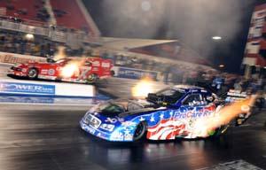 Both Troxel and Connolly come to Topeka fresh off of their first wins of the season. For Troxel, the victory was a landmark. After struggling through the first half of the regular season, Troxel became the second female to win a race in Funny Car, and the first female and the 14th driver overall to reach the winner's circle in the sport's two fastest categories, Top Fuel and Funny Car. In 2008, Troxel made the move she'd only speculated about before and one her husband anticipated with more anxiety than joy - from Top Fuel to Funny Car. It was a move that made competing against her husband almost a certainty. Headlines predicted what would happen when the two halves of motorsports' fastest couple stared each other down on the track. Johnson Jr. quipped it was "every man for himself." But it would be Troxel who would win first - not against Johnson Jr., but instead against fellow Funny Car rookie Mike Neff. Neff tuned Gary Scelzi to a Funny Car world championship title in 2005 before replacing the late Eric Medlen as pilot of John Force Racing's fourth entry in 2007.