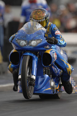 We have had a strong showing. We have won three of the last five races, so I think we are right on par with where we need to be for this Countdown, and I think we'll be pretty tough to beat. You know, I live in North Carolina, 45 minutes from (zMax Dragway @ Concord), so I'd love to win the first race there for us. TIM WILKERSON: I think the rule change for this year, you heard a lot of sniveling about the extra weight that was put on the cars, and I've been told by a lot of crew chefs I had a real unfair advantage, because my car -- they actually used my car as an example, believe it or not, from last year. They took a weight of everybody's car, what they weighed and mine, and Gary Densham's weighed the most. When they did that, you know, there was a bunch of talk about, well, the performance is going to be terrible for a car that's that heavy, and I had two rounds of eliminations in Pomona in the fall and they decided that wasn't going to be a big deal. When they added that 50 to 75 pounds on these other cars over and above what they weighed last year, really threw the crew chiefs into a tizzy. And so I think they have a little bit of an advantage with that, and I'll give them all that one. Towards the end of the year here, middle of the year, when we had to change chassis, I know there was a lot of talk about, well, those guys are not going to run worth a darn as soon as we do that and that's going to get them. Fortunately we've been able to prove them wrong and show it doesn't matter, and if you can give us some plywood to hold the body and some tubing you made in your backyard, we'll still be as fast as anybody else if we can get away with it. Everybody has kind of caught up. Didn't take them long to figure out that weight doesn't mean anything. Q. Tim, any chance you'll have a second car with your son? TIM WILKERSON: Thank you for asking that, he's a special part of my program. Until the money is right and all that, I don't think you'll see that. There's been some conversations with some other people about it, but I'm not in a position to say anything about it right now. But it sure would be wonderful to me because he's just such a great kid, and you know he does a good job in a car. We took him to an IHRA race this year, and was the No. 1 qualifier and had not driven in a year and got in the finals there. We're having a good time with him and he's a special kid. Thank you for asking that. Q. Is he as good as Ashley Force? TIM WILKERSON: He is not near as good or pretty. The other day with Ashley, I tell you, I said, 'You're driving me crazy, you're not only cute, but you can drive a car and you smell good. It's ridiculous. She really does a good job, and she's a great kid. I hope everything works out for her. I don't know what you guys think, but she's done a lot for our sport. Q. You're a Funny Car driver and you've been there for several years, and if you did not have fun when you go to the track, I'm sure you'd have gotten out of it years ago. So how much more fun is it waking up on a qualifying day or on a Sunday of a national event, going to the track, with the season that you've had and the confidence that you're having? TIM WILKERSON: I think this is a lot more fun, yeah. We've always said, the old adage in the pit area has been the attitude of the crews depicted by the last time slip, and for me that's the same way. I have some of (U.S. Army crew chief) Alan Johnson's blood in me. I go up there and want to knock your head off and make you look like the biggest idiot in the world when you're next to me. I hope that's finally coming out. We've really tried our best to always do that and we've just never had the resources and the people, and now we really have it all. Tony will tell you when we were racing Alcohol Funny Cars, we had a great time with that. And we went to the racetrack doing the same thing then with no money and a little bit of talent and a lot of heart, I guess, for lack of better terms and we still have that. We still have the same opinion, and like I said, when I see one of them guys do some backflips under their fire suit, I'll be impressed but until then, they are going to have to get in line. Q. Matt, there seems to be a rash of red lights, and you said people are taking shots at the light. How do you deal with that? If you get too aggressive you're liable to red light yourself and throw away a potential win; but you don't want to leave any time on that, right, because the class has become so competitive; what do you do? MATT SMITH: You know, there's a lot of red lights in our class. The bikes, they are so light and they react so quick. It's about like the second round of the ringers, the bike battle at Indy. Andrew Hines, you know, took a shot at me and went .003 on the light and I had an .040 light just right where I wanted to be. You know, I out ran him by a hundredth, so he beat me. So that's part of our nature. I feel like I have a fast enough bike and if I go up there and have an .02-.04 light, I'll win a lot of races, and we've won four this year, the most of anybody. Like Tony and Tim and even Greg, when you're No. 1, everybody tries to shoot for you and everybody wants to beat you, especially in Tony's case. With him winning six in a row, everybody goes up there because they want to put their name in the book as the ones that knocked him off that spot. THE MODERATOR: Thanks to everyone who joined us, and the drivers for giving us some time out of a busy schedule as we get ready for the playoffs.