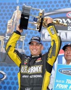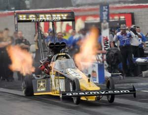 with his commanding run from Friday night. His U.S. Army dragster ran a