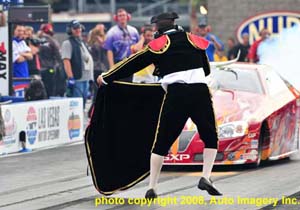 Justin Humphreys' Pro Stock (car) team, donned a matador's outfit and Humphreys' GXP sported a set
