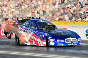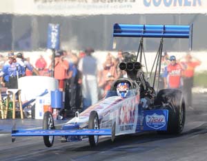 The run was particularly impressive given the soaring heat that kept every one of the five championship contenders in Funny Car from getting his car down the Auto Club Raceway under power. The most notable of the five was points leader Cruz Pedregon, who remained unqualified and will have just two more attempts on Saturday to get in the field and keep his championship hopes alive. The other provisional No. 1 qualifiers at the sixth and final race in the NHRA Playoffs, the Countdown to 1, were J.R. Todd (Top Fuel), Jason Line (Pro Stock) and Eddie Krawiec (Pro Stock Motorcycle). There will be two more rounds of qualifying on Saturday before the 16-car fields are set for Sunday's race. Troxel's 4.105 in her R2B2 Racing Dodge Charger matched Mike Neff's 4.105 from Thursday, but she moved around Neff based on her superior 304.25 mph speed (vs. 299.13 for Neff). "Some days you've got to be good and some days you've got to be lucky and today, getting it on speed, I think we were a little bit of both," Troxel said. Cruz Pedredon's Advance Auto Parts Toyota Solara team followed up a 4.478 on Thursday with a tire-spinning six-second run on an even steamier Auto Club Raceway drag strip on Friday to set the table for a high stakes Saturday qualifying session. Last year, Cruz's brother Tony Pedregon just needed to qualify to for all intents and purposes clinch the Funny Car championship and he just eked into the field at No. 16 in a dramatic late-Saturday afternoon qualifying session that may be foreshadowing for the final qualifying session of the 2009 season.