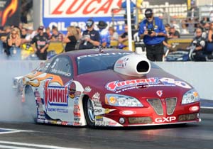 Newly crowned Pro Stock world champ Jeg Coughlin lost in the first round to Allen Johnson.