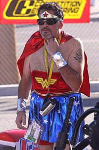 As good as the outfits were this year, and they were very good, they did not eclipse the favorites from last year. Angelle Sampey, who was not present this year, stole the show last year with her cheerleader outfit. Meanwhile, S&S Racing crew chief Ken Johnson, an amputee in real life who also was not present this year, was everyone's favorite last year as an authentic peg-leg pirate. Top Alcohol Dragster newcomer Monroe Guest continued to impress here with a pair of very impressive runs. During final T/AD qualifying late on Saturday evening he recorded an absolutely unbelievable 5.155-second elapsed time. This is the seventh-quickest T/AD elapsed time ever recorded while his 281.01 mph top speed is the fifth-highest T/AD top speed ever recorded. In the first round Guest proved that his run of the previous day was no fluke as he recorded a 5.164-second winning elapsed time at an even faster 281.77 miles per hour. Three-time T/AD World Champion Bill Reichert remains the category leader in both departments. His 5.103-second elapsed time and his 284.75 top speed, both recorded at Baytown, Texas in April, 2007, are the T/AD standards. Speaking of Reichert, he was not in attendance at Las Vegas while Jim Whitely and Duane Shields, his two closest competitors for the 2009 T/AD World Championship, were. Brandon Johnson proved to be a one-man wrecking crew as he beat Shields in the first round and Whitely in the second with the net result that neither competitor gained a single point for the weekend. Both Whitely and Shields have one points meet left to claim, but with only one points meet left to be contested one of those two is going to come up short since they both can't be the winner at the final Lucas Oil event of 2009. Meanwhile, Reichert has one national event left claim and he is going to use Pomona as his final 2009 event. Even at this late date there several points' scenarios that can play out but this weekend's results definitely helped Reichert in the quest for his fourth-straight T/AD World Championship.