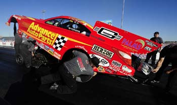 and months ahead. NHRA's Dan Olson, Cruz Pedregon, and his crew chief Rahn Tobler worked