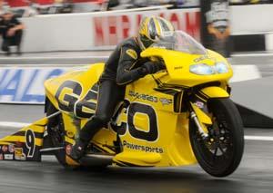 "That's just one hit and the first time out and a lot of people were spinning the tire, so I don't think this really shows anything about the potential," Stoffer said. "But the next three qualifying runs will show us more. Our Suzuki inline fours can do better in these conditions than we do in the hot, sticky stuff, so there's going to be more parity." Qualifying continues Friday and Saturday with Rounds 2-4 before the 16-car fields are set for Sunday's final eliminations.
