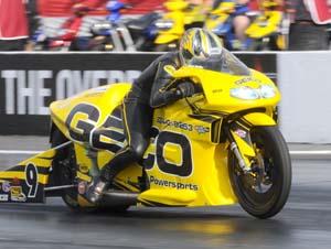 In Pro Stock Motorcycle, no one bettered Stoffer's 6.982-second pass at 191.70 mph aboard her GEICO