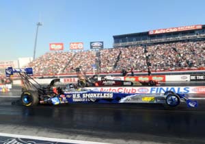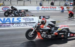riders at the NHRA Finals in the bike class including