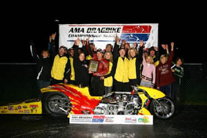 Summary of Season Accomplishments Geoff and I have so many people to thank for a great year, The people and businesses above who helped us get to Valdosta and achieve a dream that we have been after since we moved to Top Fuel in 2001. Our team, Aaron Langford, Jack Learment, Ron Jury, Tayler Brabandt and Tyler Priddle for a season of hard work, sharing cost to get to Valdosta and putting up with Geoff and I. (not always easy to do) Our spouses, Stephanie Pollard, Bonnie Campbell & Jen Jury. Their hard work and dedication keeps the team running smooth. Larry, Steve and the McBride team for their help on and off the track since our project began 4 years ago. We are proud to thank Brad Penn Oil, the "Official Oil" of Pollard Nitrosports, CGS Automotive and Refinishing, Plating Master, Sparky's Performance and Vanhoucke Siding Contractors, for their support throughout the 2009 season. Congratulations to Chris Hand for an awesome 244 mph pass and his win at Valdosta. Congratulations to our good friends Keith, Roger and Leonard for their 4th (AMA) Funnybike championship and congrats to Mike Konopacki for 3 (AMA) championships in one season, Wow!!! We are working to put together an exciting 2010 season. See you next year. Greg & Geoff Pollard