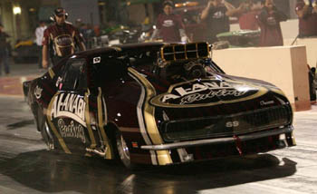 "We had made such great gains in testing," said Sheikh Khalid, " that I knew a victory wasn't out of the question; it wasn't too much to expect." And his assertation was on the money, as the rookie driver earned his first Pro Extreme victory in the Arabian Gulf Region-based ADRL over Bader Ahli in an exciting final round confrontation. While Ahli was able to take a slight advantage off the starting line (.044 to .056), it wouldn't be nearly enough to hold off the Frank Manzo tune-up that had Shiekh Khalid's Camaro acting more like a freight train than a racecar. Sheikh Khalid blistered through the eighth-mile clocks at a stunning 207.02mph (327.49kph) in 3.677-seconds - resetting both ends of the Arabian Drag Racing League world records and taking the win over Ahli's respectable 3.899-second effort. "I'm your huckleberry," an enthusiastic Sheikh Khalid said as he rolled his Tim McAmis Race Cars built Camaro into victory lane. "I suppose we bought that one, too?" Crew chief Frank "Ace" Manzo, responsible for 101 Lucas Oil NHRA Drag Racing Series wins and 12 season titles as a driver himself, has seamlessly transferred into the tuner capacity with the Al-Anabi Racing super power, and has very similar expectations for Sheikh Khalid's Pro Extreme effort. "First and foremost, I have to say that it's because of great people like Sheikh Khalid, Howard Moon and Tim McAmis that I have this opportunity," said Manzo, checking in via cell phone from the Qatar Race Club outside the nation's capitol city of Doha. "Just like football, where the quarterback gets most the credit, I tend to get most the glory for the success and performance we're seeing with this Al-Anabi Racing program, but I want to say that I've got a great team here, I've got 5 guys out front blocking for me that make days like today possible." The veteran Top Alcohol Funny Car driver continued, "We are very satisfied with our performance here today, but we know there is still more in this combination. The car has been perfect and Sheikh Khalid has done a great job driving, making all the adjustments that we need him to make, adapting and learning a lot with every lap down the track." "This facility that Sheikh Khalid has created, the Qatar Race Club, is easily in the top three best racing surfaces in the world. The opportunity we've been given here is unbelievable, and I'm truly honored to have the opportunity to race at this level, on this scale, and do it on an international level." As for the world record-setting performance of the Al-Anabi Racing '68 Camaro, which will go down in the history books as the second quickest and third fastest pass of all time for a door slammer, Manzo was obviously content, but didn't hesitate to say that there is a lot left. "It might not happen this season, but I don't think it's out of the question for these cars to run 3.50s at over 210mph within the next year to 18 months. The power is there." While the Arabian Drag Racing League is still in the early stages of development, the talent and performance of the cars, drivers and crew chiefs competing is second to none. With three back-to-back events slated for January and then two more races in February and March, it's still anybody's game when it comes to the Pro Extreme world championship. "I can't say enough about this team and this car," said Sheikh Khalid. "it's been a dream weekend and we're looking forward to a few weeks off so that we can prepare for three straight races in January." Drivers from all points of the globe are scheduled to converge on the Qatar Race Club's eighth-mile for Round 3 of the ADRL on January 7th and 8th. For more information on the Qatar Race Club and the Arabian Drag Racing League's season-opener and to see the schedule for the rest of the season, log onto www.qrczone.com