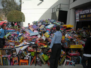 all day as thousands of toys were dropped off making a mountain of memories for children this