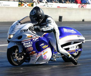 "Jerry Cooper of Cooper Performance spent much of the winter and offseason building our state of the art Pro Mod for ADRL. It's truly a work of art. Team manager Glenn Allen and I got a truck and trailer and dressed them and the bike in the colors of our primary sponsors Memphis Car Audio and Fulmer Helmets. Team shirts were also made thanks to Vicci Wear, the bike was completed, and I was decked out in brand new leathers thanks to Shift Racing. "But hard economic times and some bad luck snuck up on us and forced us to park the rig and focus on quickly saving our business and getting Jerry Cooper's health back on track. Our intent was not to miss more than a race or two, just enough time to turn things around and go racing. But it didn't pan out that way. Times got tougher and tougher. Money was scarce, Coop's health wasn't getting any better, and our hopes and dreams of a championship were deflated. The bright side is, the few appearances we made showed a positive reaction from racers and fans. Everyone loved the bike and program we put together. "So while the ADRL program moved to the back burner, I turned my attention and sponsorship obligations to Pro Street. The Pro Street Hayabusa built by Cecil Towner of HTP Performance is very, very experimental. Pro Street has been dominated by turbocharged motorcycles for nearly a decade. Turbo bike builders turned the very difficult nitrous Shootout bikes into manageable machines and the class sped up by an elapsed time of nearly a second over that period. "Anyone who knows me knows that I always embrace a challenge. So when Cecil decided to take some of the technology that made turbo bikes so fast and manageable and apply that to a nitrous bike, I was all over it. We bought a MoTeC engine management system and got chassis parts from Terry McIntosh of McIntosh Machine and Fabrication. We also had some help from Coby Adams of Adams Performance with a custom dry sump and Brock's Performance Products with an exhaust system and BST carbon fiber wheels. MTC Engineering chipped in as well with their new Gen2 clutch system and Wizard's of NOS from the UK supported us with a nitrous system. By the way, the Wizard's products are the wave of the future for nitrous! "I won't say that going our own way hasn't been difficult, because it has. This program has been a real rodeo ride-running quick, smooth passes one moment and launching skyward the next. But the bike is far and away the quickest and fastest nitrous Pro Street bike ever and held together well the whole year. Then we found the consistency we've been looking for this last race in Valdosta, where we qualified in the middle of the field with a 7.45. Unfortunately, I had Victor Gotay in the first round of eliminations. He was coming back from his Norwalk crash and was a man of destiny in Valdosta and won his first Pro Street event. "The main thing about this year is that we started off with big projects and a lot of promise. I don't feel like I delivered everything to my sponsors that I intended, and will be working with them to represent their products in 2010 as a way of saying 'Thank you' for their support this past year. I can't say enough about how these people and companies supported us in 2009 even though our appearances at the track weren't all they should have been. "I look forward to announcing our plans for 2010. Cecil's more determined than ever with the Pro Street bike and Coop's getting thing's together at his shop and has his health back on track. Thanks again to everyone for their help and encouragement. Have a great holiday season and I can't wait to get back on the track in Valdosta!"