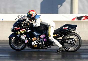 "Taking the opening win from seasoned veteran Rickey Gadson put things into perspective for what we had to do for the remainder of the season," said Fernandez. "We then won in Atlanta against the '08 championship bike. At this point, Chris and I were in sync and dead set on our championship." Mission accomplished for the pair, who until this year were better known as nice guys who over achieved on a limited budget than as world-beaters. But now that's all changed. "We knew going into Atco that we were probably good enough in points to win the championship," said Jones. Indeed, the team had won every race by that point. After Valdosta and Atlanta came Memphis, Michigan, and Indianapolis. "And then our focus went towards laying down a number." But it turns out that the Jones Performance Cycles '14 thrives on race winning consistency, not record seeking gambles. "We posted some amazing wheelies, but no records," laughed Jones. "We were willing to take that risk, but only after our main goal of locking in a championship was accomplished." Fernandez leapt out in front in the Atco final round but had to back out and give up the win when the ride got too hairy. "The cold weather and powerful turbo got the best of us in Atco," reported John. "We headed to Norwalk with the intentions of resetting our ET record and qualified first with a tenth ahead of the field. But we all know trying to break records with some big wheelies on a 63 inch ZX14 is not a simple task!" Fernandez lost in round 2 at Norwalk, but teammate Eddie Murphy went to the final. "I was happy for Eddie to runner-up at Norwalk on a bike that I built," said Jones. "We're still fighting some chassis issues with that bike, but we tore into it along with our main bike to prepare for a good finale back in Valdosta. "Any race in Valdosta is by far the most important ones for me, due to the fact that I know that the stands will be filled with friends, family, and customers from the local area. Even though I'm from Florida, the majority of our testing takes place at South Georgia Motorsports Park due to the great prep work and the good old southern hospitality provided by track manager Wade Rich and his crew. They are a very motorcycle friendly track and appreciate your business, unlike another track right in my back yard." The team arrived at the AMA Dragbike Finals in Valdosta determined to put their Atco and Norwalk performances behind them and finish the year off looking like the championship team they are. "We experimented at the last couple of races trying to get into the 7.70s and got nowhere but sent to the trailer when the front wheel went flying toward the sky," said Jones. "I decided Sunday morning in Valdosta to set the bike back up exactly like it was when we were running consistent .80s and winning. "After the first round I had some confidence once I saw the bike go down the track smoothly with very little power thrown at it. I couldn't help but notice what Stacy Smith was doing with that little monster GSXR1000, but I knew he was playing with fire. Once we made it to the finals to face Stacy it was not even a tough decision as to keep the bike the same or not. For the last two races we had seen the effects of turning up the bike in the cool air and it simply was not working for us. I decided to leave everything the same and depend on proven consistency to get us to the line first, and it worked." And so the team finished the year the way that champions are supposed to, with a win at the Finals. "Simply put, this season has been a good one," said Jones. "I feel a strong sense of pride with our winning efforts this year, because the majority of R&D on the ZX14 turbo products we are racing with were tested and developed here in-house at Jones Performance Cycles. "I am very grateful for the support that we received this year from Coby Adams and Adams Performance, Scott Casper of Western Power Sports, Shinko Tires, Doug Ray of Spencer Cycle, Barry Henson and Velocity Racing, Kim, Matt and Jeff at Carolina Cycle, Ken at Motul Lubricants, Andrew Pearce, my loving family, the Fernandez family, and God above. And I can't leave out the class and contingency sponsors such as Kawasaki, Orient Express, MTC, VP, Tiger Racing, World Wide Bearing, MPS, and Vortex. And of course, Scott Valletti and AMA Dragbike. And I surely appreciate the promotion and press that Tim Hailey, Straightliner magazine, and Matt Polito have given to us and the sport of motorcycle drag racing. "Our plans for next year are to defend the Super Street championship-or whatever class it becomes or not-along with running a Pro Street bike owned by my long term friend Bobby Fisher of Roaring Toyz. We have recently acquired the support of AEM, and Speed & Strength leathers through a deal with Bobby. "John and I are able to be focused and consistent. We both are lucky to be married to women that understand the drive and determination we have for racing, and work with us regardless of the time we spend in the shops and at the track racing and testing. If I'm not racing I try to use Sunday as a church and family day to keep the family bond close, and John does the same thing also." Jones and Fernandez start next year off back at South Georgia Motorsports Park in Valdosta, Georgia for the Bikeweek Nationals, March 5-7, 2010.