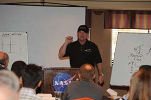 The offer to conduct a lecture was extended to Hawley after Chip Kroll, a NASA engineer attended a Super Class at Frank Hawley's Drag Racing School's Gainesville, Florida location in June. In his free time, Kroll races the Friday Night Street program at Baytown, Texas and attended Frank Hawley's class while working to acquire his NHRA license. After the lecture he decided the topic may be appropriate for colleagues at work and approached management about how to invite Hawley to talk to them. Once the offer was extended to Hawley, he graciously accepted and plans were made for his trip to Texas. On Thursday December 10th, Hawley spoke to a room of approximately ninety attendees made up mostly from the Avionics Systems Division. "To me, there are numerous similarities to the extremely fast decisions that need to be made by folks who hold highly technical positions and those of drag racers," Hawley said. "Many of the same things I teach to my students during a Super Class were conveyed during my lecture for the NASA employees, with maybe a little more emphasis on items that would apply to the general population. Everyone deals with stress in their lives. Some, of course, have a lot more than others. If you work in an environment where you may be challenged with making critical decisions it can help to have a better understanding of your own human performance capabilities and develop methods with which you can train yourself to handle these situations more efficiently."