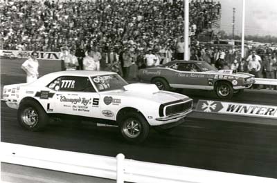 Bill Jenkins vs. Ronnie Sox in 1970 Pro Stock final.