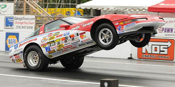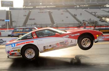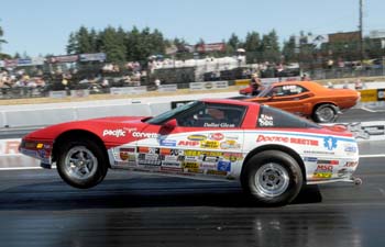 "We all signed up for it," said Glenn. "My dad drove the wagon, Dana drove the El Camino, and I got to drive Tom Turner's Stocker. We went there just hoping to get a quick shot on TV, and we didn't think they'd pick a car with a lot of stickers so we untied the front shocks and let it loose. It was a little too loose on the first pass so we tied it back down, and the next pass it went about 150 feet before the front tires hit the ground. It was a lot of fun. The stands were packed, and the people were so loud. The best thing about it was that they were all there for the bracket guys; there were no alcohol cars, no Top Fuel, it was just the normal Saturday night bracket racers." Glenn made it all the way to the final round but got out of the groove early and was beaten by Dave Wakefield by five-hundredths at the finish line. He still went home with $2,000 cash for his troubles, though, a tidy sum for a weekend of enjoyable racing.