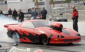 The younger of the two does have the edge on his older brother in one favorable aspect: this season he started out the year at The Strip at Las Vegas Motor Speedway in a Top Sportsman car owned by Shane Thompson. The '94 Camaro is a Jerry Bickel-built former Pro Stocker, and Glenn strapped in, cut a .009 light, and went a quick 7.86 in the first round of the Supreme Sportsman Series. Unfortunately, he was a thousandth too quick at the finish line and his opponent got the win light, but it was still a remarkable adventure. "That was my fastest pass ever," said Glenn, whose previous career best was 8.13 in a dragster. "My ultimate goal is to race Pro Stock, so sitting there all strapped in wearing a SFI 15 fire suit like they do and using a B&M Pro Bandit shifter that has a 45-style grip that feels like a Liberty Pro Stock shifter, it was a lot of fun. Plus, Pro Stock was the big hit of the weekend because the Showdown was taking place, and it was great to sort of be a part of that."