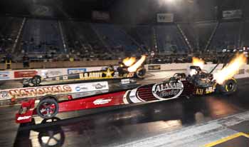 Funny Car class while Mike Edwards has stretched his lead to an astonishing 337