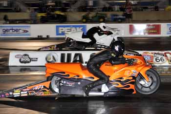 Motorcycle event on the NHRA tour. LE's win was a combination of having a good